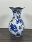 Chinese Blue & White Porcelain Vase, Flowers, Leaves 7.5”