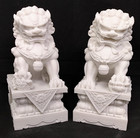 Nos Set Of 2 Imperial White Marble Chinese Foo Dogs Statues 6" Tall -