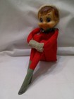 Vtg 1950s Christmas Red Pixie Doll Plush Poseable Shelf Sitter Knee Hugger