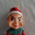 2 Vintage Christmas Pixie Elf Rubber Face, Red Green Shelf Sitters Ornament 10"