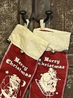 2 Vintage Style Red Felt Merry Christmas Stockings Jingle Bells Santa Reindeer