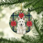 White German Shepherd Christmas Poinsettas Ceramic Ornament Wdk8647co1