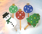 5 Christmas Wooden Santa Yard Stakes Hand Painted Snowman Ornaments Wood Vtg