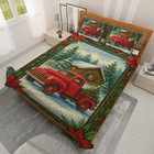 Red Pickup Truck Log Cabin Christmas Winter Home Xmas Holiday Quilt Bed Set