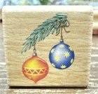 Wood Mounted Rubber Stamp Fancy Christmas Ornaments 1 1/4” Block Scrapbooking