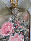 Victorian Decoupage Glass Glitter Shabby Chic Pink Roses Christmas Tree Ornament