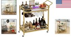 New Gold Metal Wine Bar Serving Cart With Rolling Wheels And Handles