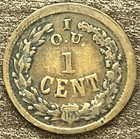 1863 Patriotic Civil War Token, 1/391a. "i O.u 1 Cent" Au
