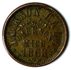 Civil War Store Card Token Jackson Hall Michigan W.m. Jackson Groceries