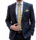 New Classic Paisley Dark Blue Gold Jacquard Woven 100% Silk Men's Tie Necktie