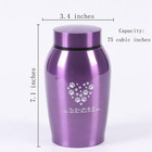 Stainlee Steel Pet Urns,paws Engraved Dog Urn For Ashes,cat Medium, Purple
