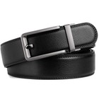 Automatic Ratchet Click Buckle Leather Belt Silver Chrome Matte Black Buckle G45