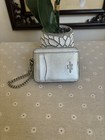 Coach Zip Id Card Case With Silver Chain Leather Mini Coin Wallet