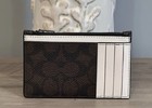 Coach Canvas Logo Mini Skinny Id Credit Card Case W/key Chain Brown
