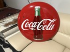 Old Coca Cola Button Sign Porcelain Original 1960’s 24" Metal Button Coke Bottle