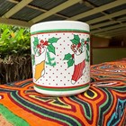Vintage Christmas Mug Stockings Holly Candy Cane Holiday Coffee Cup