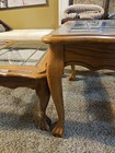 Best Vtg Carved Ball Claw Feet Oak Coffee Table Smoky Glass 52” - Ships Flat Hot