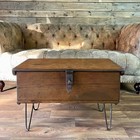 Old Antique Oak Chest, Vintage Wooden Storage Trunk, Blanket Box, Coffee Table.
