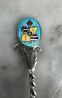 Antique Hawaii Sterling Silver Enamel Souvenir Spoon 1883 1/4 Dollar 25c Coin