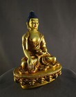 Old Tibet Pure Bronze Gilt Sit Shakyamuni Sakyamuni Amitabha Buddha Statue