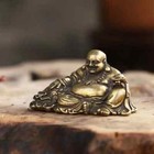 2.16" Copper Statue Chinese Tibet Silver Carved Happy Buddha Figurine Collect