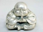 Old Tibet Silver Sitting Small Laughing Buddha Statue Ancient