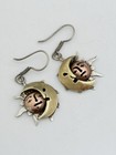 Vintage Mexico Sterling Silver Copper Brass 925 Sun Moon Face Dangle Earrings