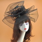 Black Round Tulle Fascinator Clip Bow Flower Feathers Headband