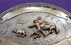 Vintage Ricardo Sterling Silver Steer Wrestling Cowboy Rodeo Trophy Belt Buckle