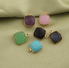 Cushion Carved Flower Gemstone Pendant Charm Gold Plated Diy Necklace Making