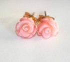 Gem Quality 14k Gf Carved Rose Flower Pink Angel Skin Coral Stud Earrings