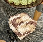 Handmade Square Crochet Washcloth Dish Washing Scrubbies Knit Green Beige