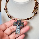 Vintage Religious Bejeweled Cross Beaded Christian Necklace 54248