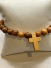 Handmade Brown Wood Cross Beaded Bracelet 8mm Religious Faith Gift