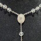 Silver Tone Rosary Clear Beads Cross Crucifix Catholic Necklace 28” Nwot