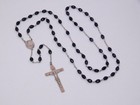 Catholic Onyx Rosary Black Beads Necklace Holy Soil Medal Vintage Cross Crucifix