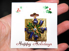 Holly And Bells Crystal Rhinestone Christmas Brooch Pin With Gold Bag
