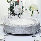 Silver 18" Wide Round Floral Embossed Cake Stand Cupcake Display Wedding Party