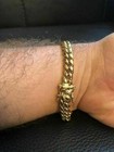 Men's Miami Cuban Link Chain Bracelet Solid 14k Gold Plated Stainless Steel