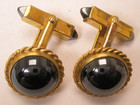Men's Designer 14kt Gold Ep Black Onyx Enamel Cross & Rhinestone Cuff Links