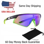 Black Full Rim Cycling Sunglasses Mirrored Green Lens Plastic Frame Unisex