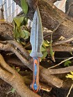 Damascus Double-edge Blade Dagger Knife Unique Design Collectible With Sheath