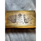 Vintage Wood Trinket Box/chest 7"x3-3/8"x2-7/8" & Metal Decorations