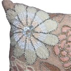 Primrose Vintage Beaded Pink Flower Decor Pillow Velvet Cream Silver Rose 18"