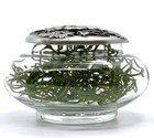 Vtg 80s Pewter Glass Signed Botanical Potpourri Jewelry Trinket Dresser Jar