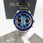Bulova Marine Star 98b301 Men's Blue Dial Six-hand Chronograph Quartz Watch 45mm