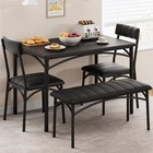 5-piece Wood & Metal Kitchen Dining Table Sets 4 Faux Leather Chairs Space Saver