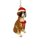 Fawn Brown Boxer Dog Figurine Christmas Ornament With Red Santa Hat New Resin