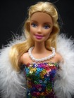Multi Color Sequin Sheath Dress Fits Barbie Doll Handmade With Boa & Necklace