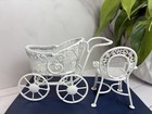 Vintage White Metal Doll House Miniature Carriage & Chair
